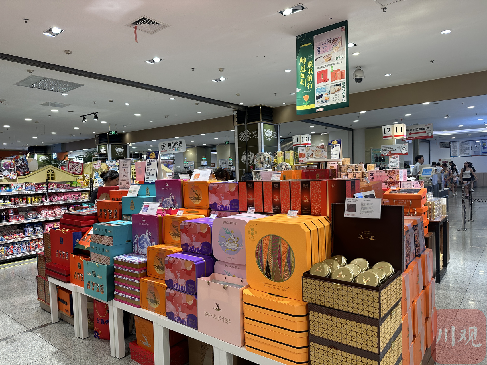 8月27日,记者在建设路伊藤洋华堂负一楼超市看到,各种品牌的月饼摆放在了两个大货柜上,不少月饼直接用牛皮纸包装,外夹方形品牌贴纸,再用纸绳捆扎……