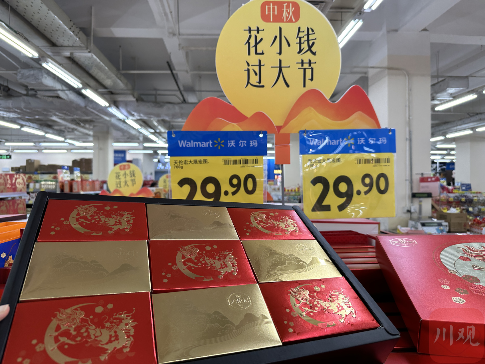 包装变“轻”了,平价礼盒也明显增多。8月26日,记者在沃尔玛北大街店看到,该店内显眼位置已摆放着各种各样的月饼,其中一款620克的礼盒装月饼仅售19.9元,还特意摆放在十分显然的位置。