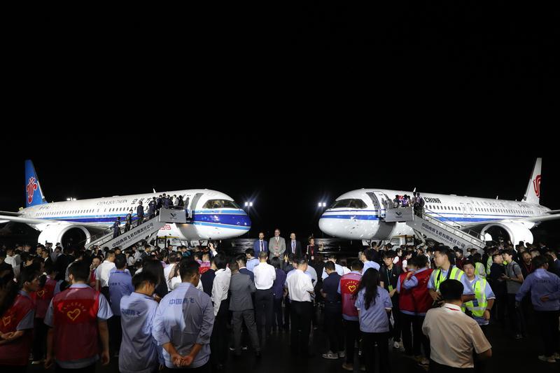 当日,中国国际航空公司和中国南方航空公司在中国商飞总装制造中心浦东基地同时接收首架C919飞机。这标志着C919飞机即将开启多用户运营新阶段。