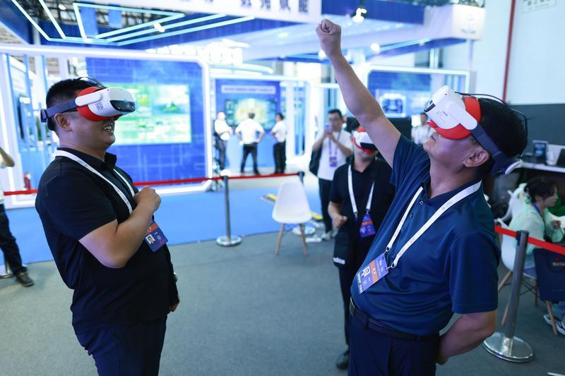 8月28日,观展者在2024中国国际大数据产业博览会会场体验VR设备。