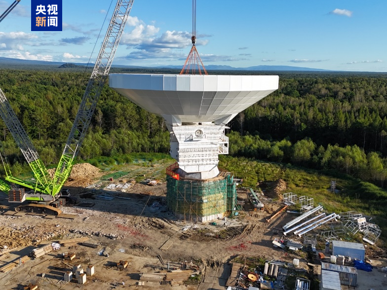 长白山40米口径射电望远镜天线完成吊装