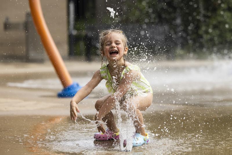 近日,美国芝加哥遭遇高温天气。8月27日,在美国芝加哥,一名儿童在公园内玩水。