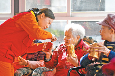 服务队队员在玉林老年公寓开展志愿服务。郝飞 摄(新华社发)