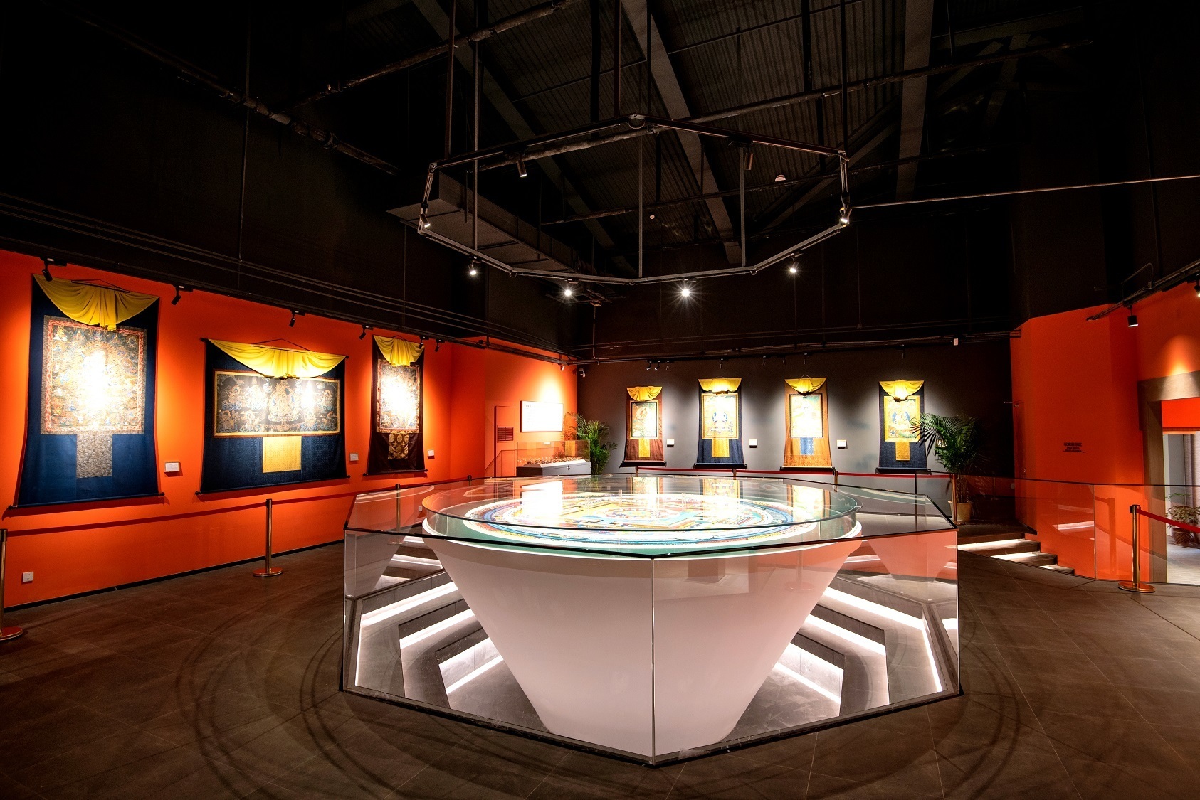作为藏羌非遗历史文化的重要展示窗口,主要分为博物馆展厅、非遗工作室、琼恰文创商店三部分。整个博物馆通过1300平方米的空间陈列,500多件藏品讲述着阿坝州最古老的文化。