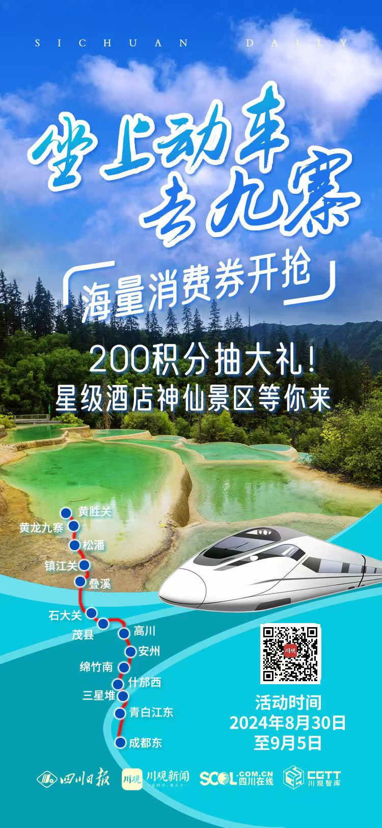 在川观新闻首页顶部搜索框输入;“九寨沟动车”,点击活动链接即可参与。