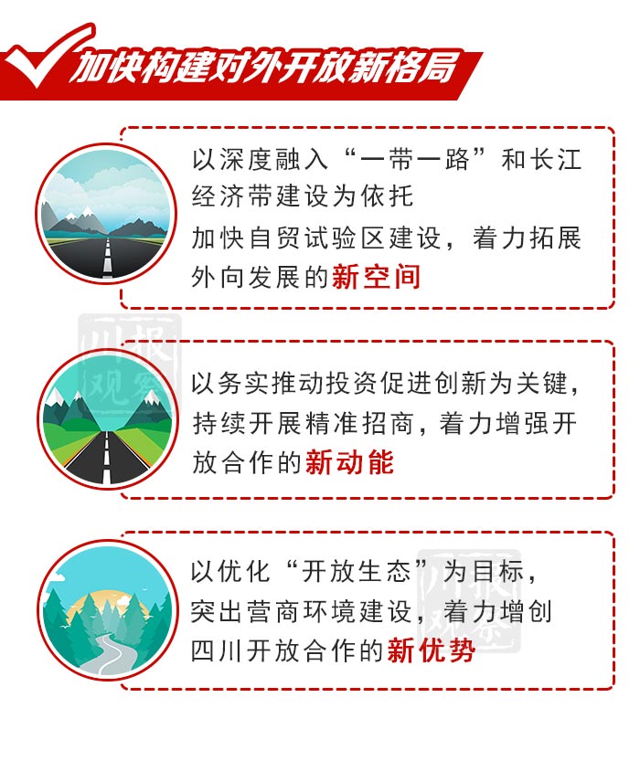 精准对接国家开放战略,加快构建更全面、更深入、更多元的对外开放新格局,确保四川在全面开发开放上走在全国前列。