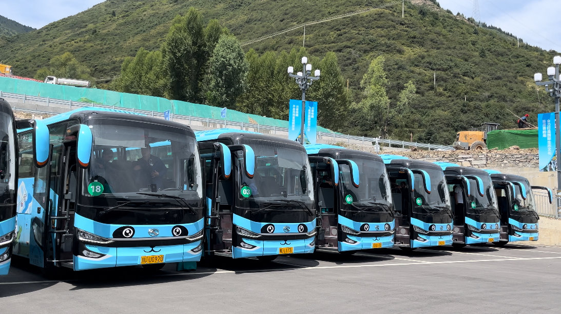 黄龙九寨站的景区接驳车。陈俊伶摄