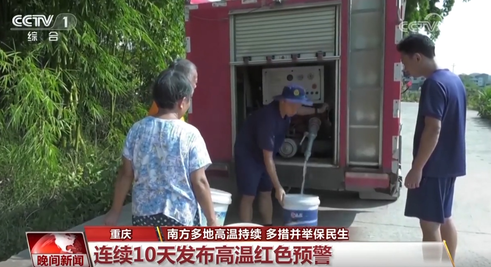 8月30日,重庆市气象台发布高温红色预警信号,这是重庆从8月21日开始连续10天发布高温红色预警。在重庆市潼南区卧佛镇部分高山村社,持续的高温导致当地饮用水源水流量减少,不少农户日常用水困难,当地紧急开展送水行动。