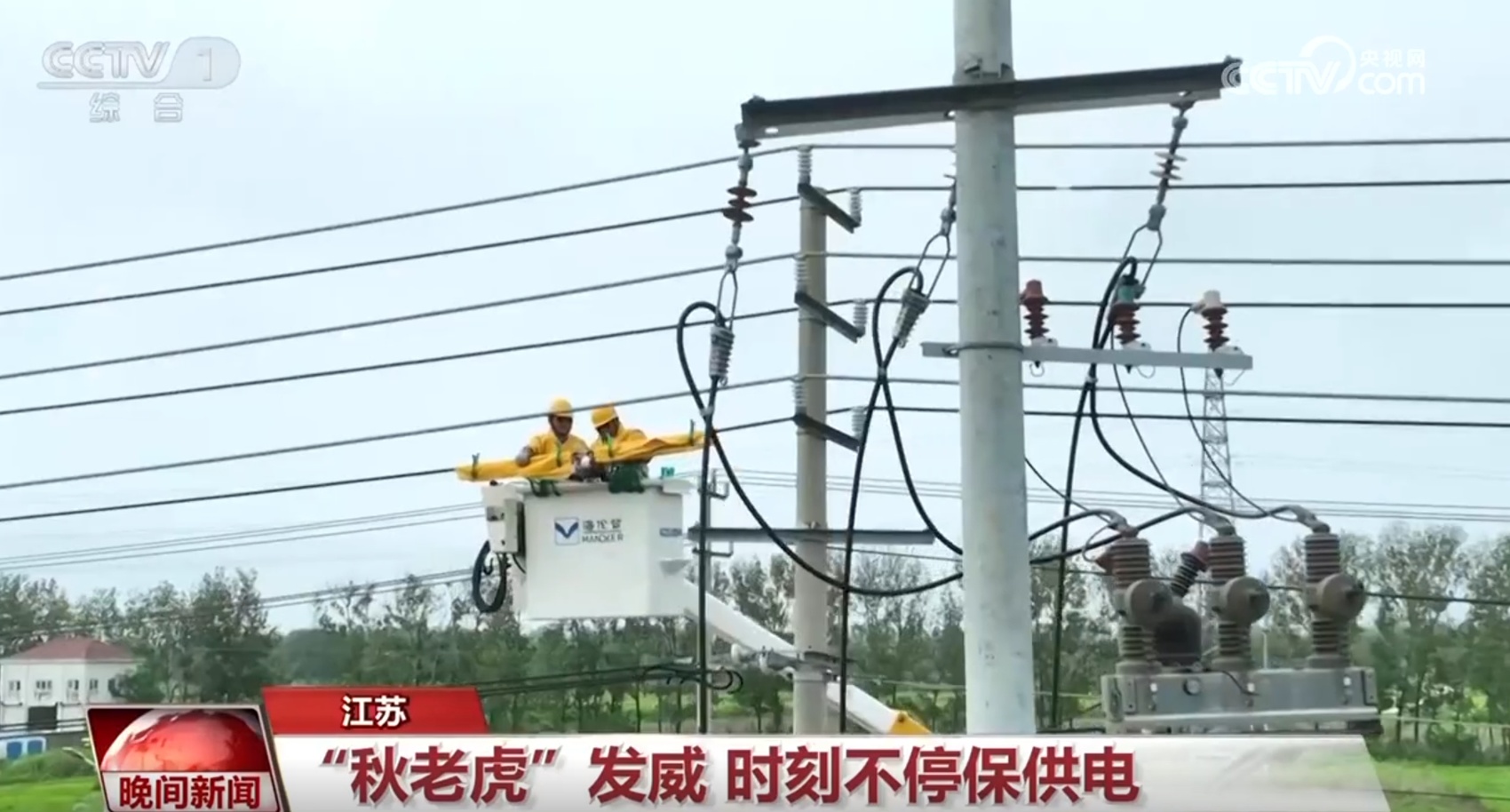8月30日,江苏多地也发布了高温黄色预警信号。在江苏连云港海头镇,当地供电部门持续对电力线路进行检修,保障高温下群众的正常用电。