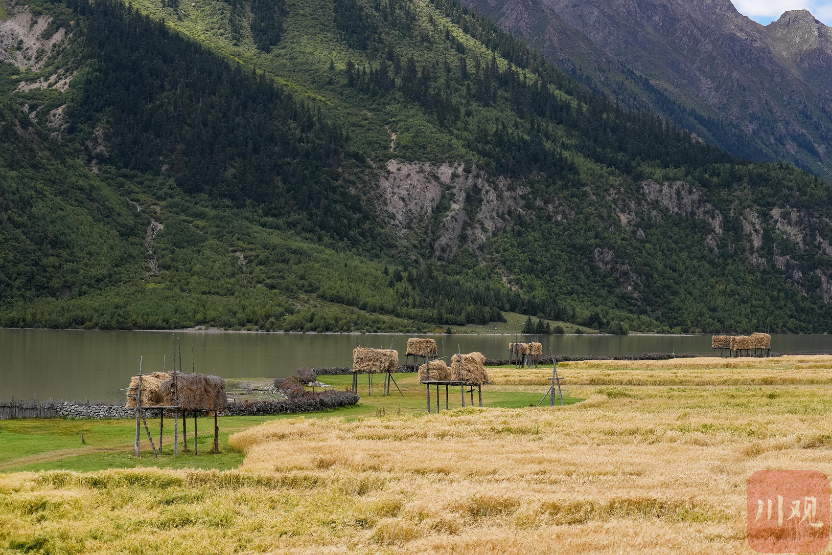 森林、青稞、湖泊构成了一幅绝美的画卷。