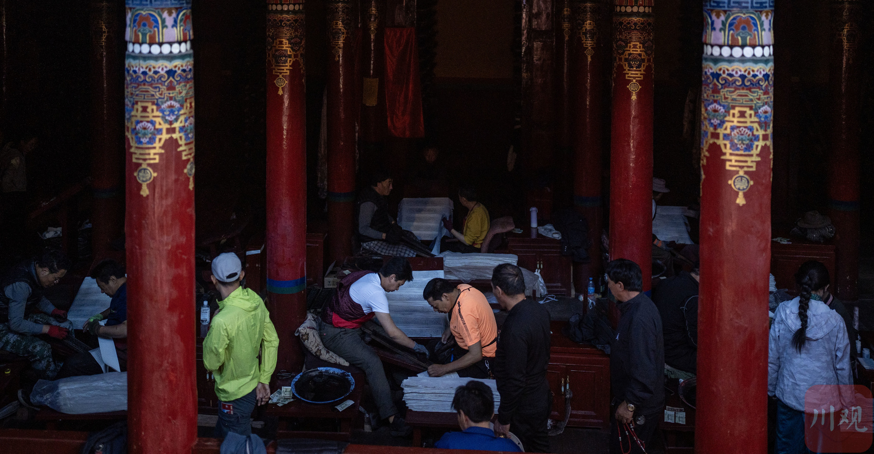 8月31日,甘孜州德格县的德格印经院内,游客正在参观游览。德格印经院以其丰富的藏文化典藏而闻名于世,其中经版的文字雕刻技艺独特,书法优美。在今年5月,德格印经院的院藏雕版档案入选《世界记忆亚太地区名录》,这标志着对印经院文化记录的更好保护和利用,也是对优秀传统文化“创造性转化、创新性发展”实践的认可。