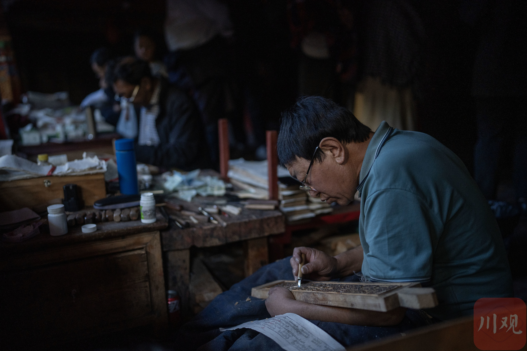 印经院工人师傅正在修复雕版。