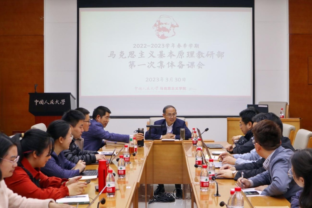 ▲ 中国人民大学举办《习近平新时代中国特色社会主义思想概论》集体备课会,党委书记张东刚领衔备课。