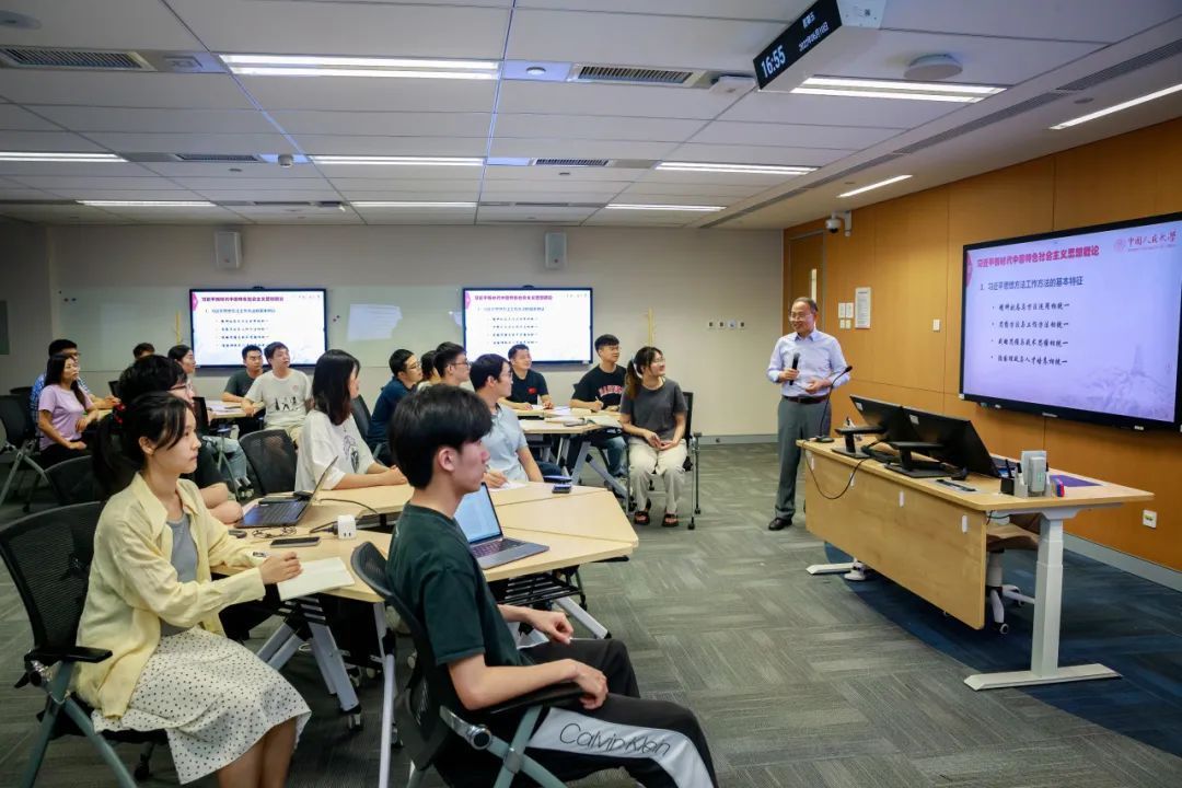 ▲刘建军讲授《习近平新时代中国特色社会主义思想概论》课程。