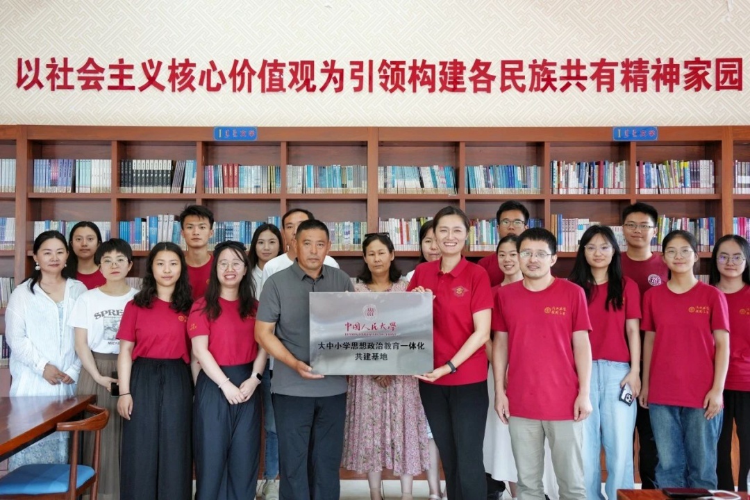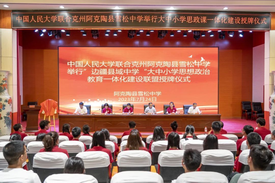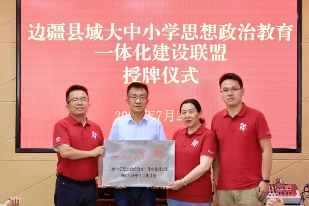 ▲ 中国人民大学向边疆“大中小学思想政治教育一体化共建基地”授牌。