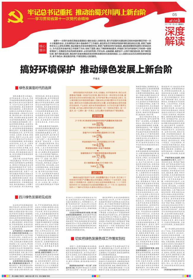 今天,7月6日出版的四川日报第五版上,刊发了一篇6000多字的长文《搞好环境保护 推动绿色发展上新台阶》,作者是四川省环境保护厅厅长于会文。