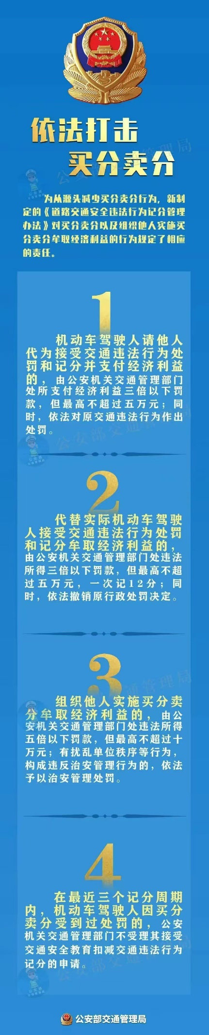 杜绝“买分”“卖分”“代扣分”的违法行为。