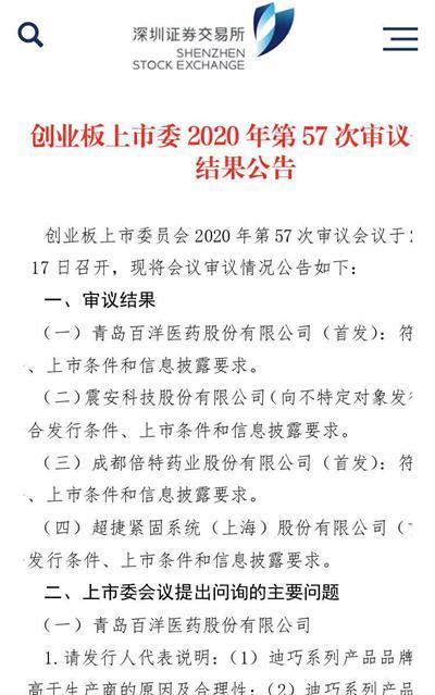 12月17日,深交所发布创业板上市委2020年第57次审议会议结果公告,成都倍特药业股份有限公司(以下称“成都倍特药业”)发行上市(首发)申请获通过,成为成都高新区今年第8家A股上市及过会的企业。