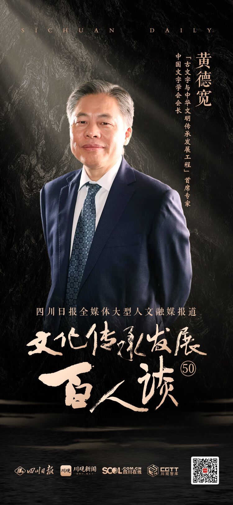 黄德宽,中国文字学会会长,中国文字博物馆馆长,清华大学出土文献研究与保护中心主任,教育部和国家语委“古文字与中华文明传承发展工程”专家委员会主任委员、首席专家,教育部社会科学委员会语言文学学部委员,国家社会科学基金评审委员会语言学科召集人。长期从事古文字、出土文献与中国古代文明研究,出版《汉语文字学史》《古文字谱系疏证》《古汉字发展论》等著作多种。