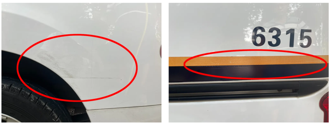 对方车辆擦挂部位(左),警车擦挂部位(右)。图源:成都都江堰公安