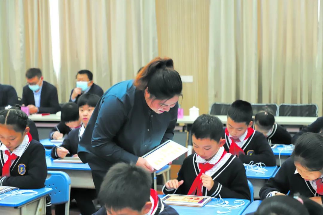 上海市杨浦区平凉路第三小学教师依托“教学助手”等信息化手段,对四年级学生进行数学学科教学。
