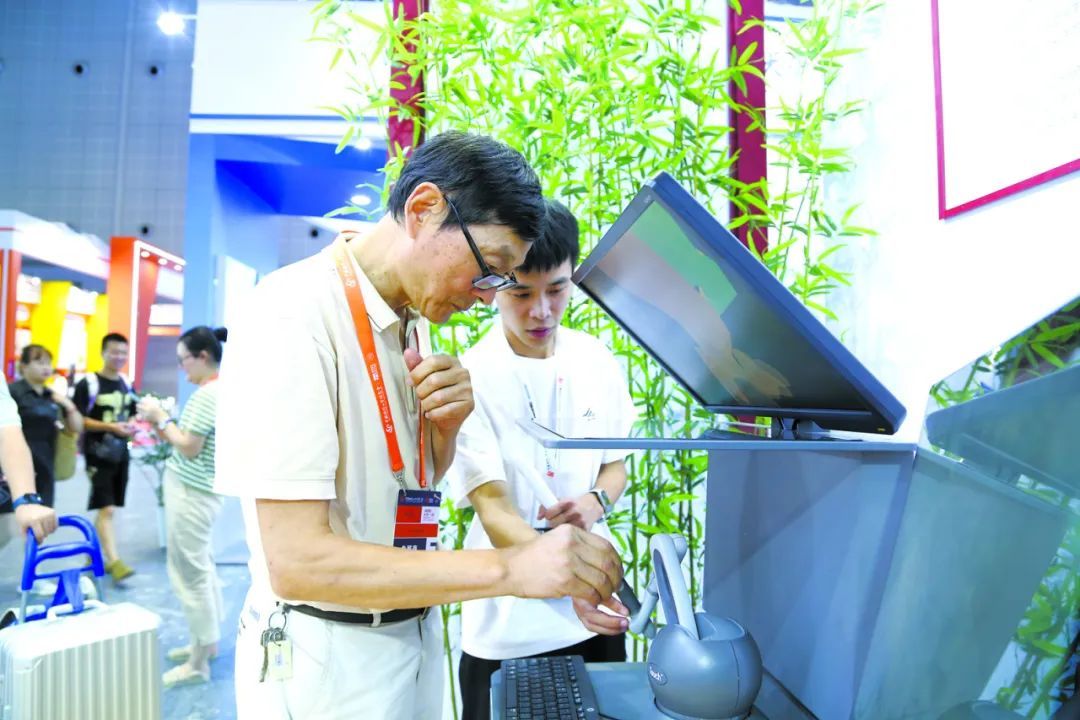 上海中医药大学“针刺手法虚拟触觉仿真实训系统”项目亮相第23届工博会高校展区。