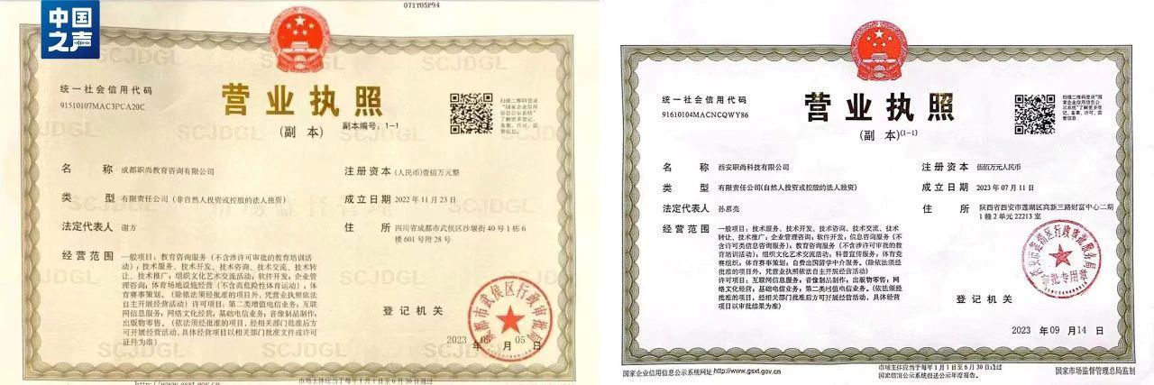 销售人员解释,天津职盛尚学科技有限公司是专门做申报材料的,在陕西西安、四川成都都有分公司,北京职尚教育科技有限公司是天津市政府招商引资过去的。一个是项目品牌、一个是公司名字,属于一个公司。