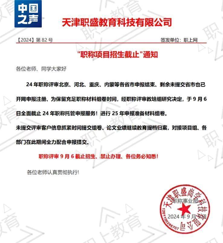 △代办发布的“职称项目招生截止”通知
