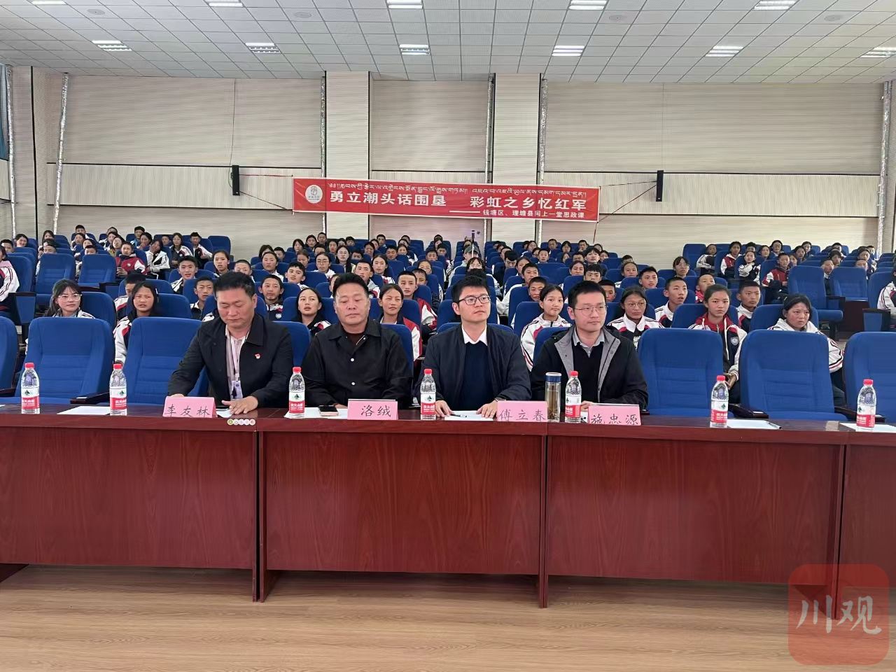 钱塘区新湾中学学生代表罗钰淋、理塘县濯桑片区寄宿制完全中学学生代表白玛卓玛先后代表两校学生发言。