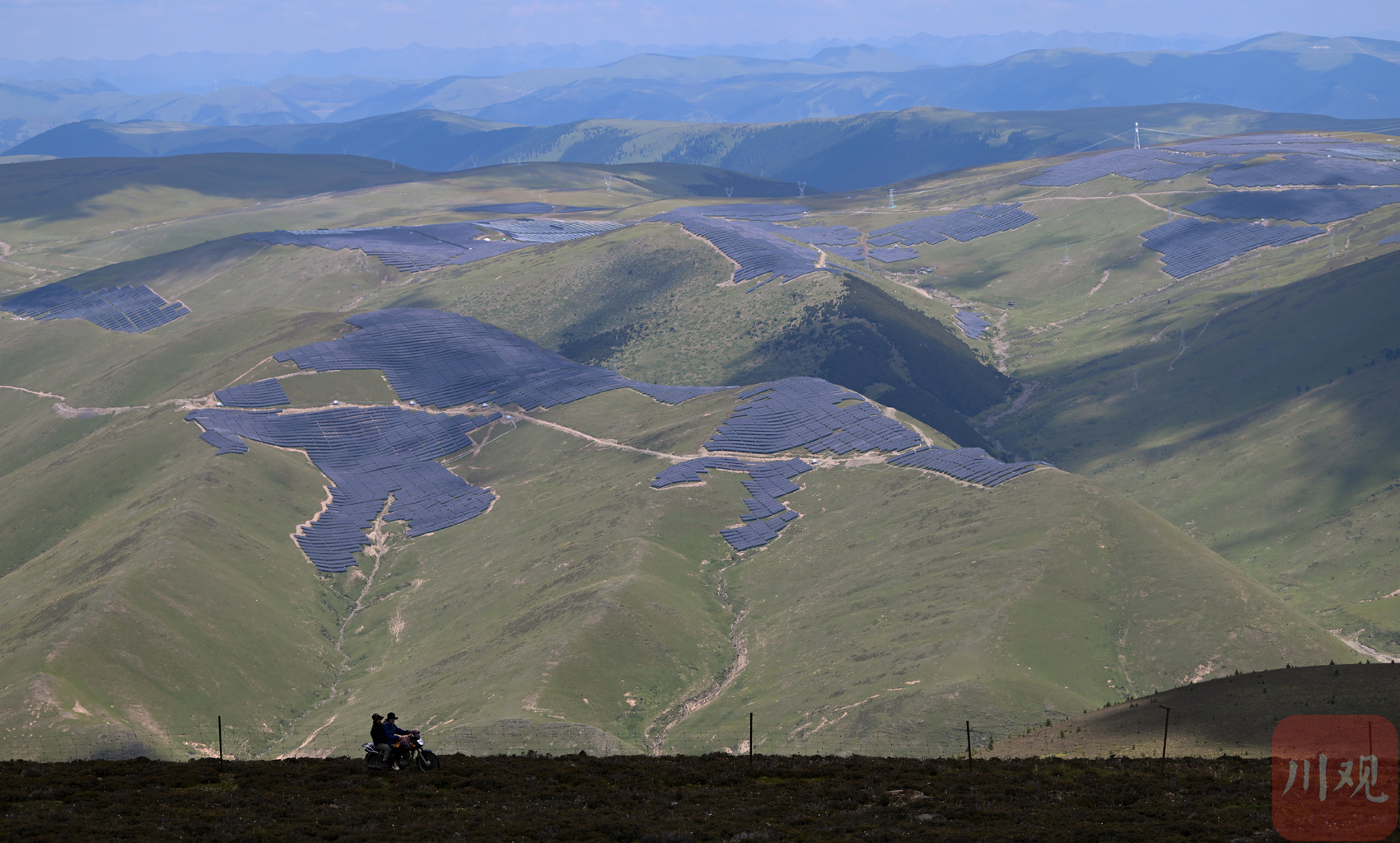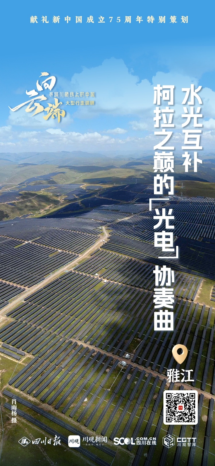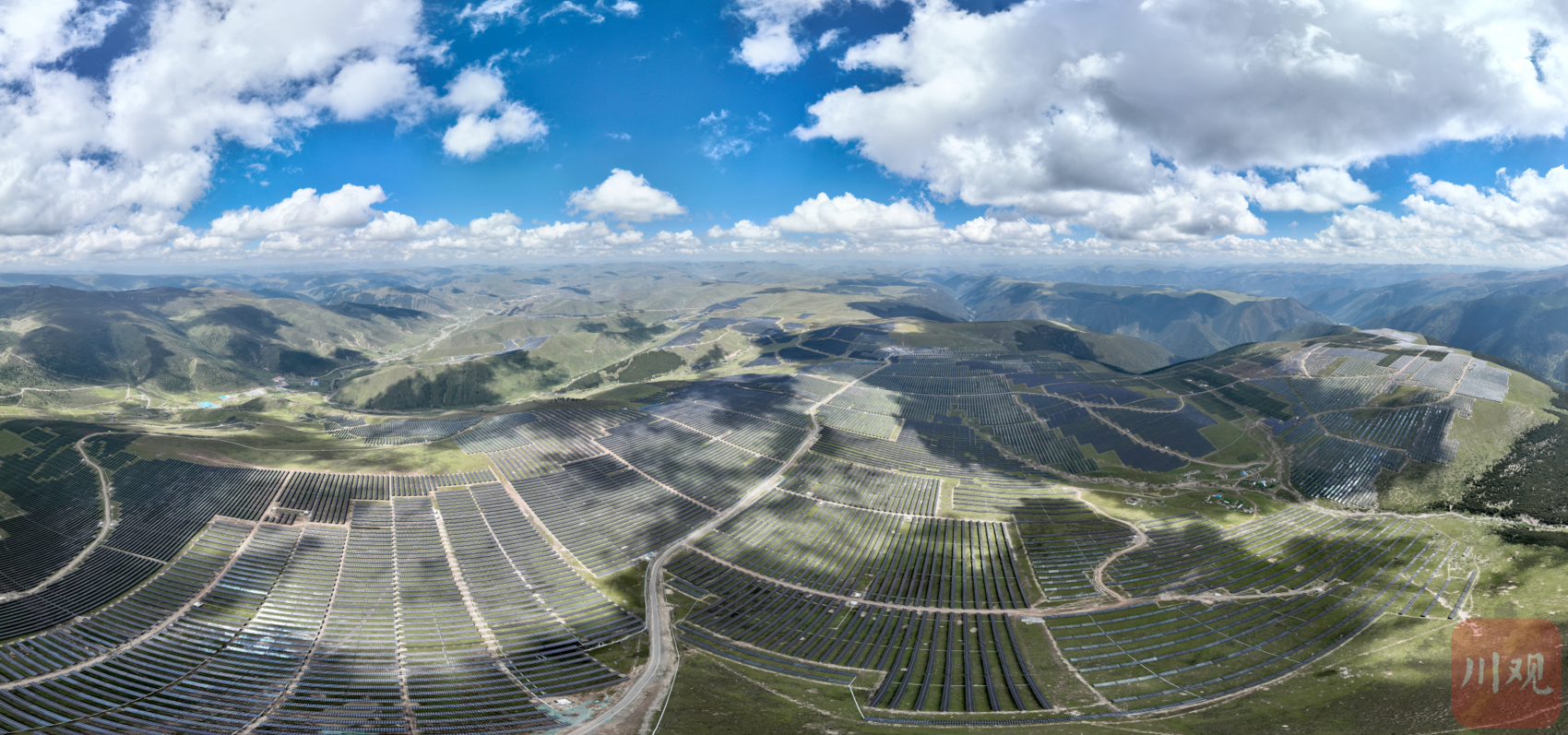 “光”与“电”,正在成为这里的一道新“风景”。其境内,海拔4600米的扎拉托桑雪山上,一排排由光伏板组成的“光伏海”在崇山峻岭间逐光发电,与远处奔流不息的雅砻江遥相呼应,这一静一动间水光共舞,点亮山河。