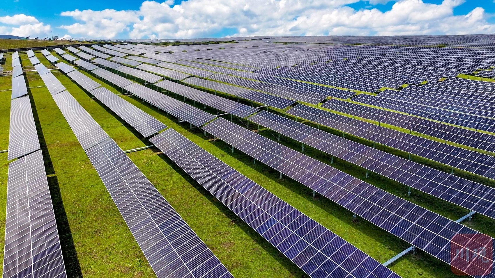 车辆行驶在扎拉托桑雪山的盘山路上,不远处,黑色长条组成的一排排光伏板,宛如镶嵌在山间的琴键,整整齐齐铺列在绿色山体之间。登上海拔4600米的山巅,一片“光伏海”豁然在眼前——这片约16平方公里的山间,200万块光伏组件镶嵌其间。