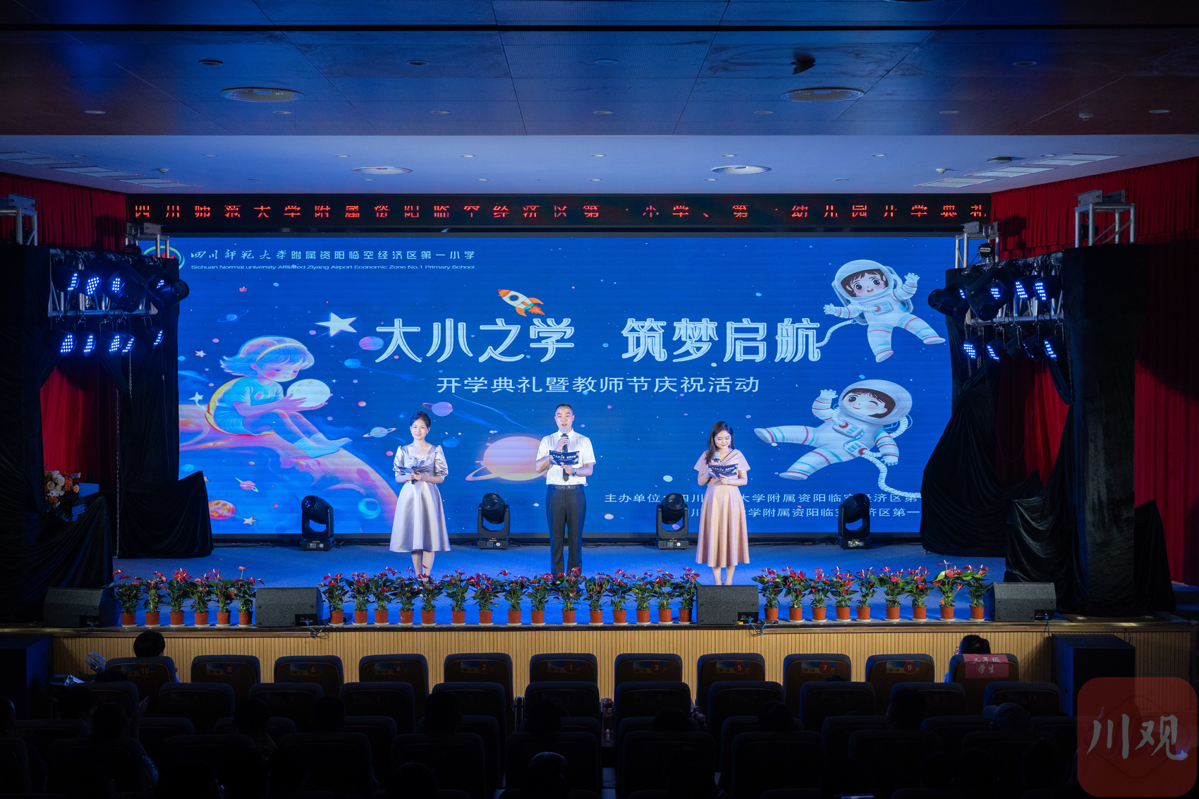 9月9日,四川师范大学附属资阳临空经济区第一小学、四川师范大学附属资阳临空经济区第一幼儿园迎来首批新生,共122名。当天下午,两校联合举办了首届开学典礼暨教师节庆祝活动。
