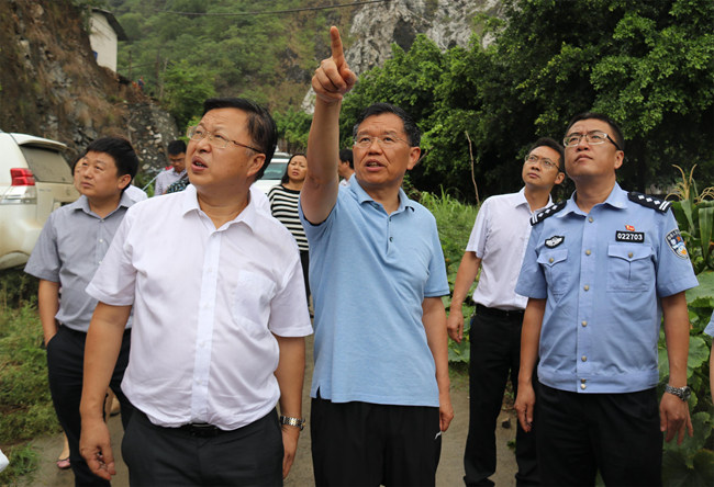 6月29日,攀枝花市委书记李建勤(中)率有关部门负责人,深入部分地质灾害点,现场检查指导抢险救援和防灾减灾工作。