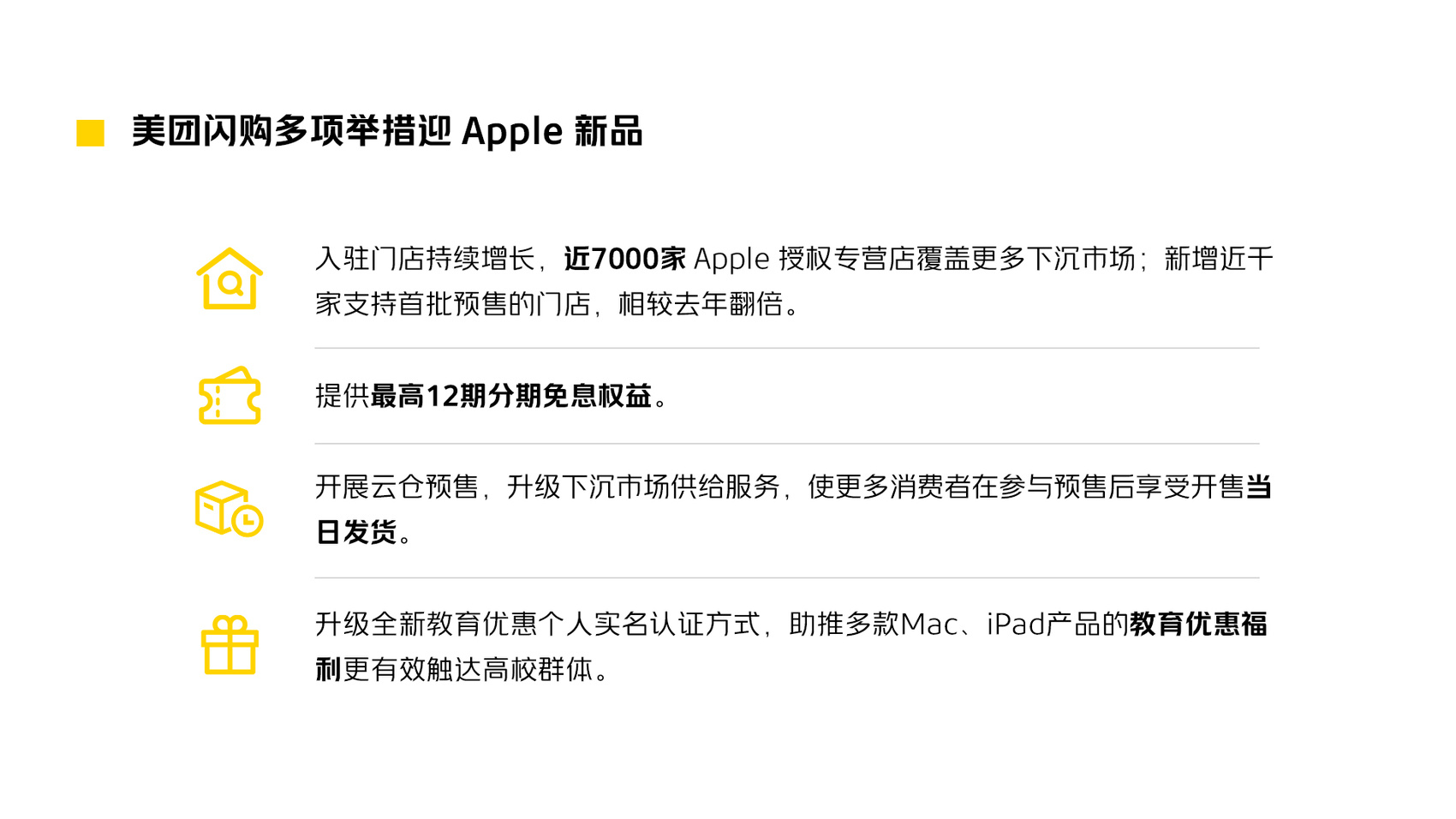 美团闪购与Apple 授权专营店合作逐年升级(制图/美团闪购)