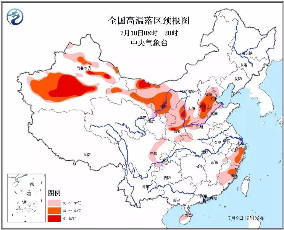同时,河北中南部、内蒙古西部、甘肃北部、宁夏中北部、山西西南部、陕西关中地区、浙江东部、福建东部以及新疆南疆盆地等地的部分地区最高气温可达37~39℃,局地可超过40℃。