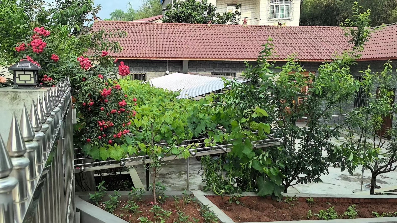 在周远先一家的经营下,庭院内花木繁盛,色彩和谐,是他们一家人健康、文明、和谐生活的缩影。