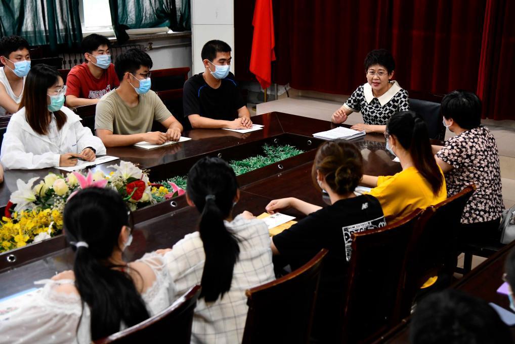 2020年6月16日,在山东潍坊学院法学院,全国人大代表高明芹在宣讲《民法典》相关内容。新华社记者 郭绪雷 摄