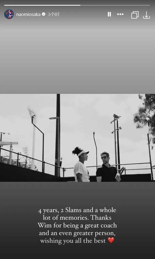大阪直美晒出了自己和教练费赛特的合照并写道:“4年、2次大满贯,和数不清的回忆。谢谢威姆,你是一名优秀的教练,也是一个更优秀的人,希望你未来一切顺利💗。”