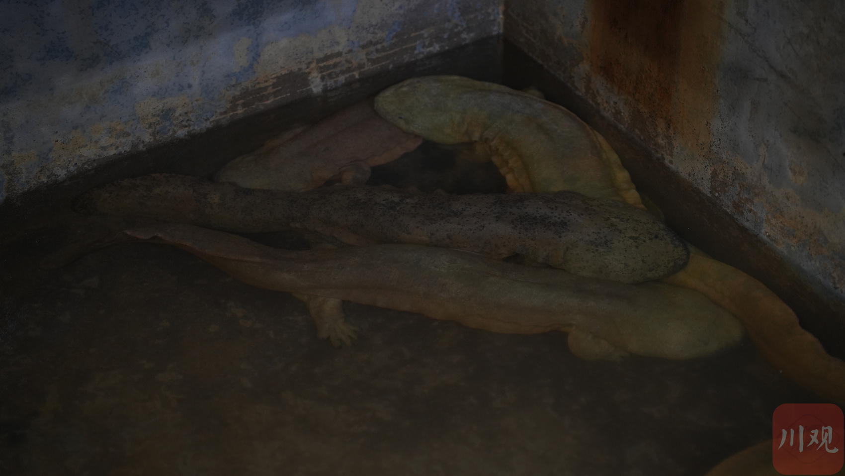 石板溪娃娃鱼生态园内人工养殖的娃娃鱼。