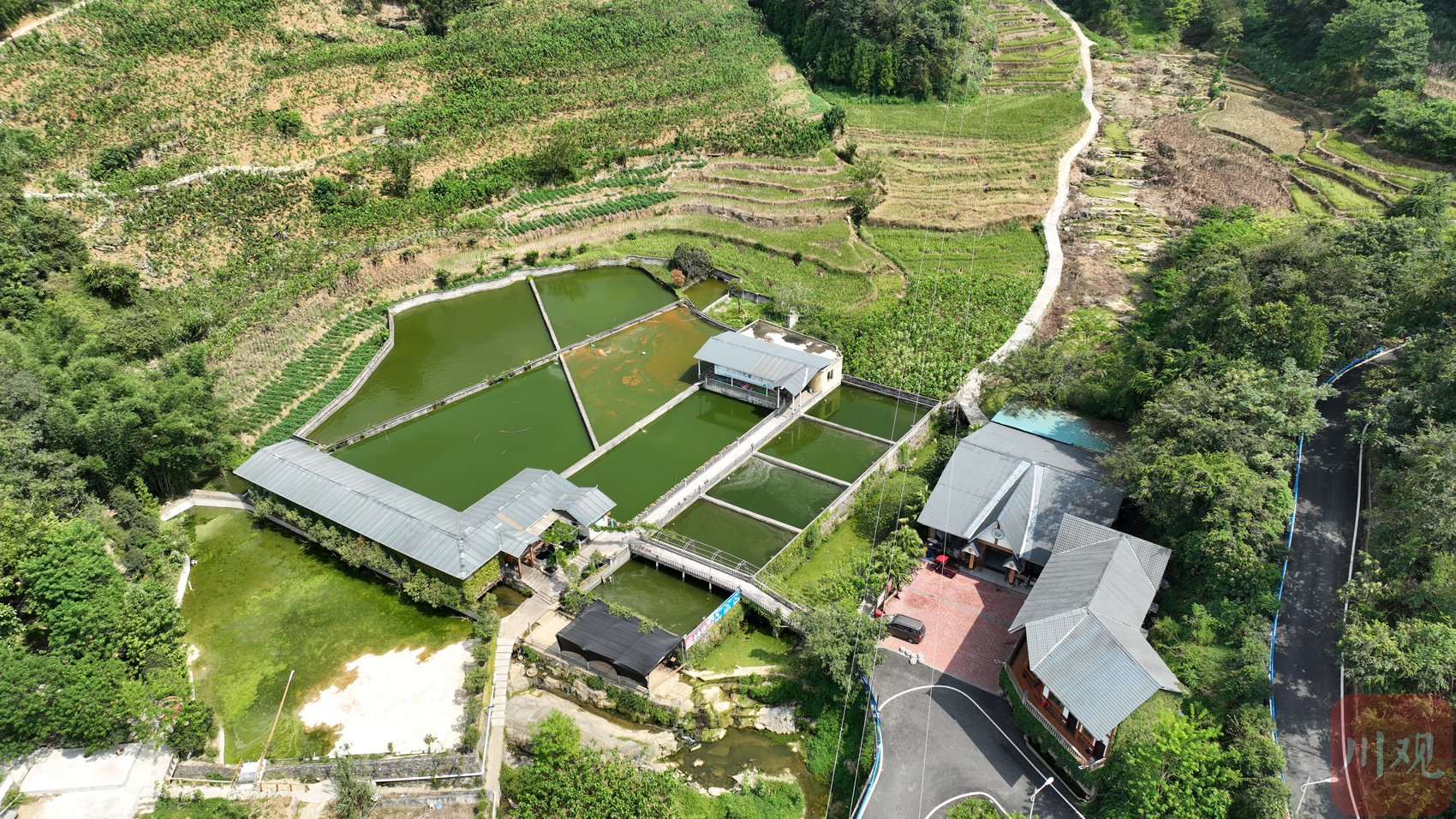 俯瞰石板溪娃娃鱼生态园周边的农业生态。
