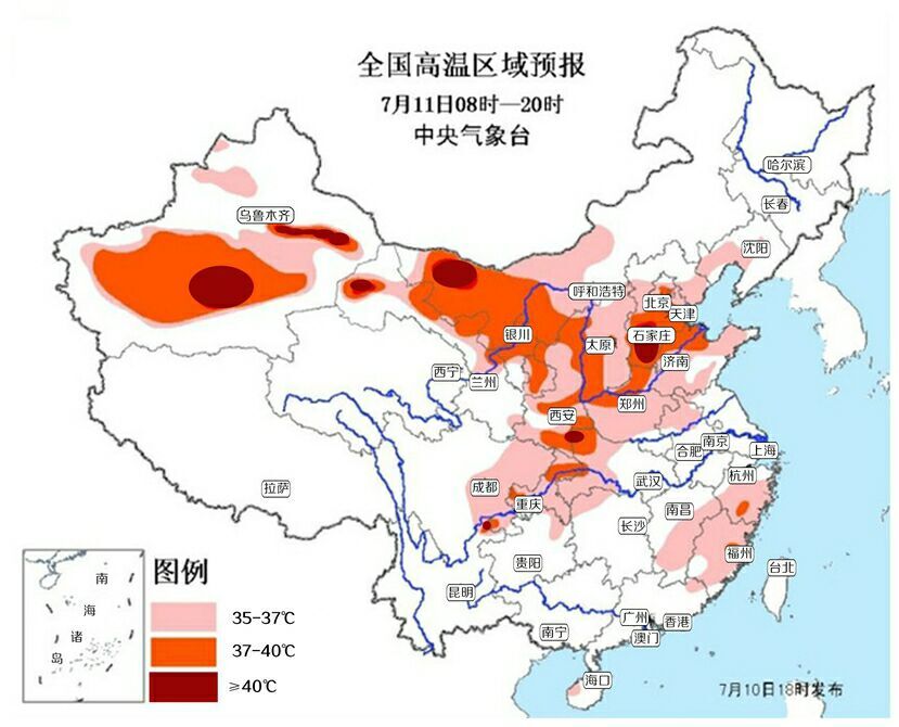 据中国天气网,未来十天,我国中东部地区将遭遇今年来范围最广、强度最强高温天气。13日至17日为高温天气最强时段,预计13日全国高温面积可达364万平方公里,将覆盖21个省(区、市)。中央气象台首席预报员孙军表示,虽然都是热,但由于南北高温的原因不同,北方的高温以晴热为主,而南方的高温以闷热为主。