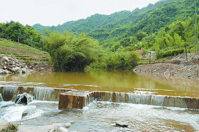 造纸厂关停后,金鱼溪水质逐渐变好,当地修建起拦河坝发展淡水生态养鱼。阚世高 摄