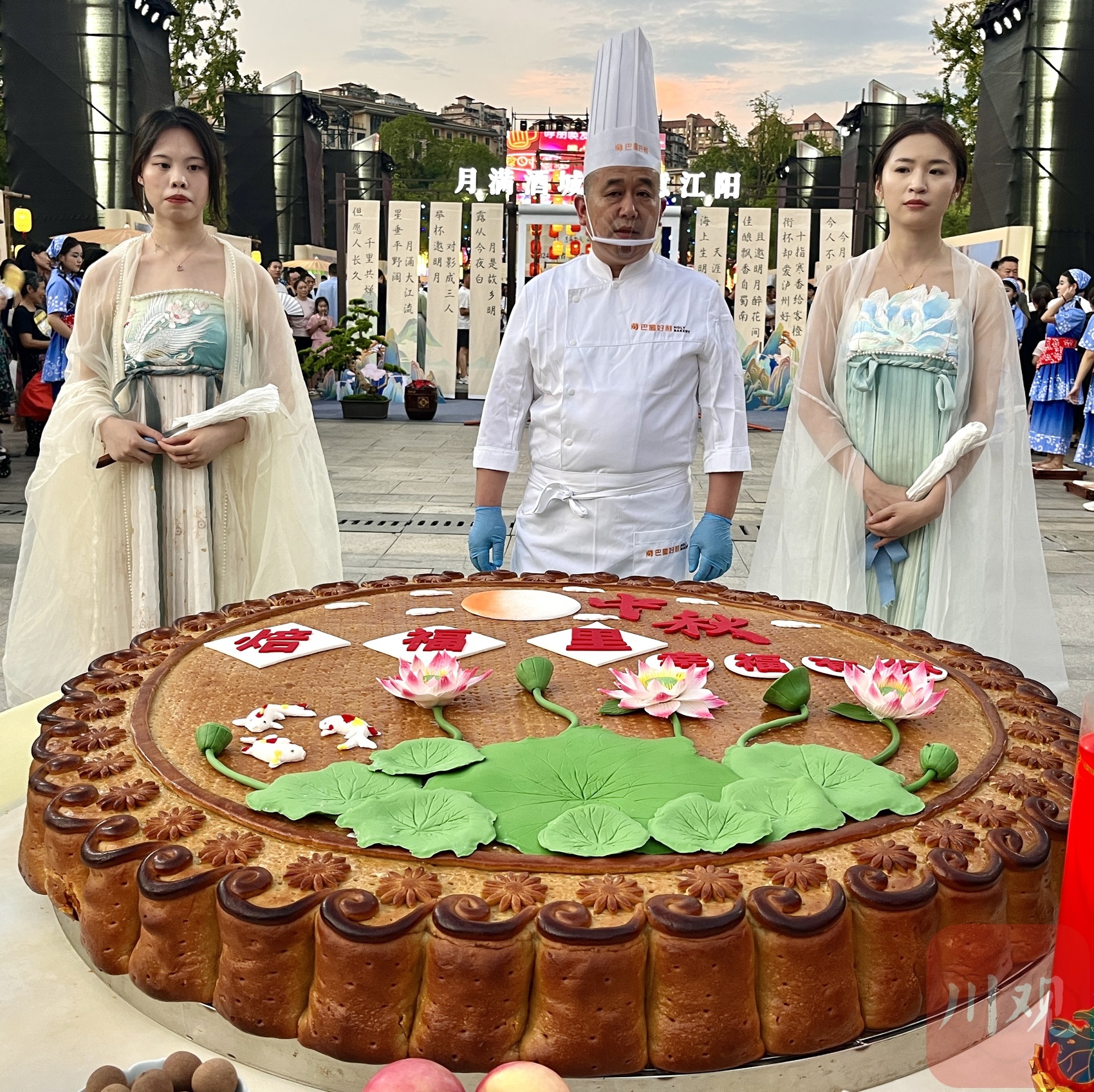 9月17日晚,“月满酒城·诗意江阳”2024四川省“万人赏月诵中秋”主题活动在泸州市江阳区江阳公园举行。活动现场,一个“巨型”月饼引来众多市民朋友的围观、拍照。“这个月饼太大了,从来没见过如此大的月饼。”市民们纷纷表示。