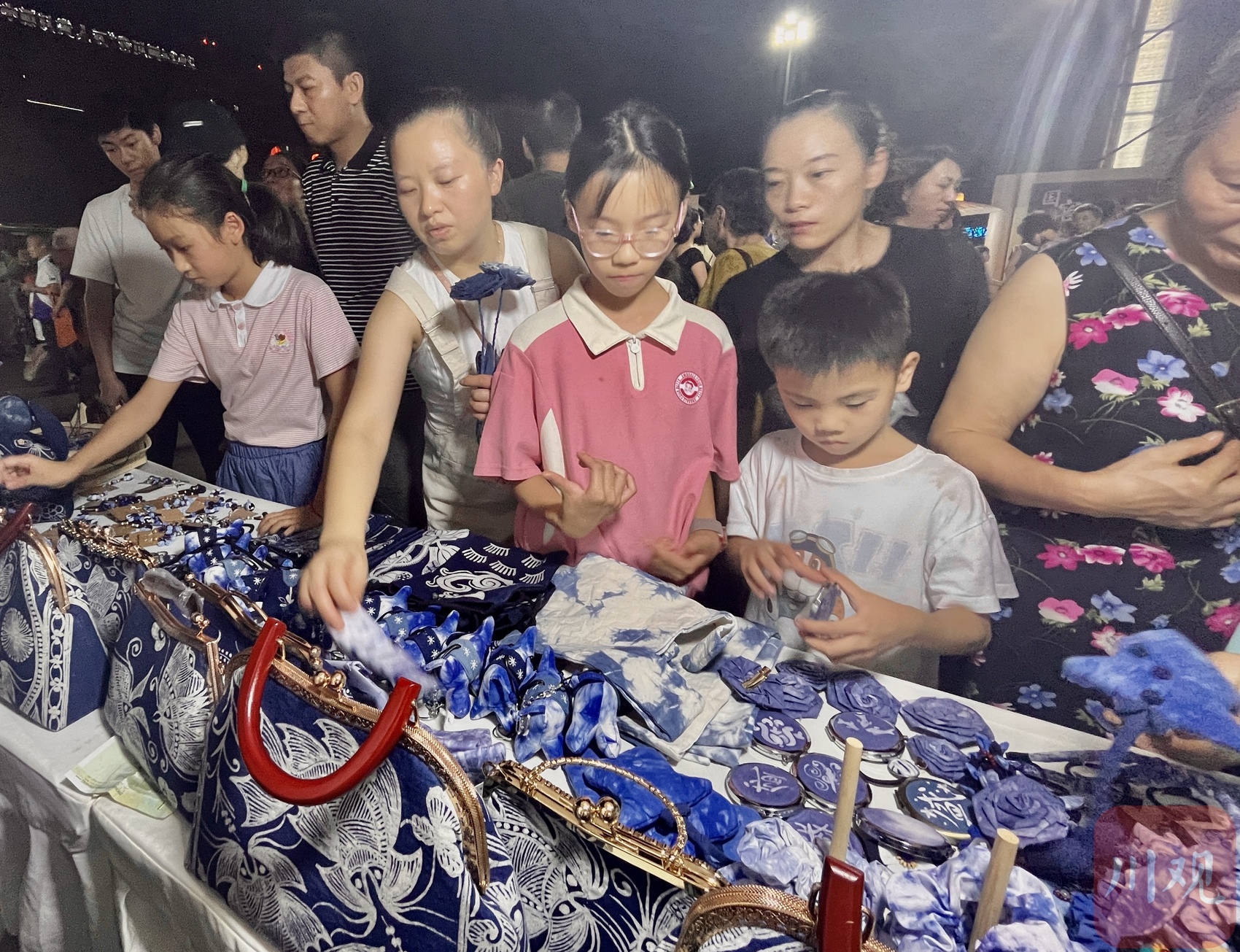 在非物质文化遗产——重庆綦江区万盛石鼓坪苗族蜡染的展位前,市民们正在挑选用蜡染制作的包包、头饰、首饰等物品。“接到綦江区文旅局的通知后,9月15日,我们就过来参加活动了。想通过这种展示让更多人了解我们石鼓坪苗族蜡染。政府发了消费券,大家参与的积极性都很高。”万盛石鼓坪苗族蜡染负责人冉媛说。