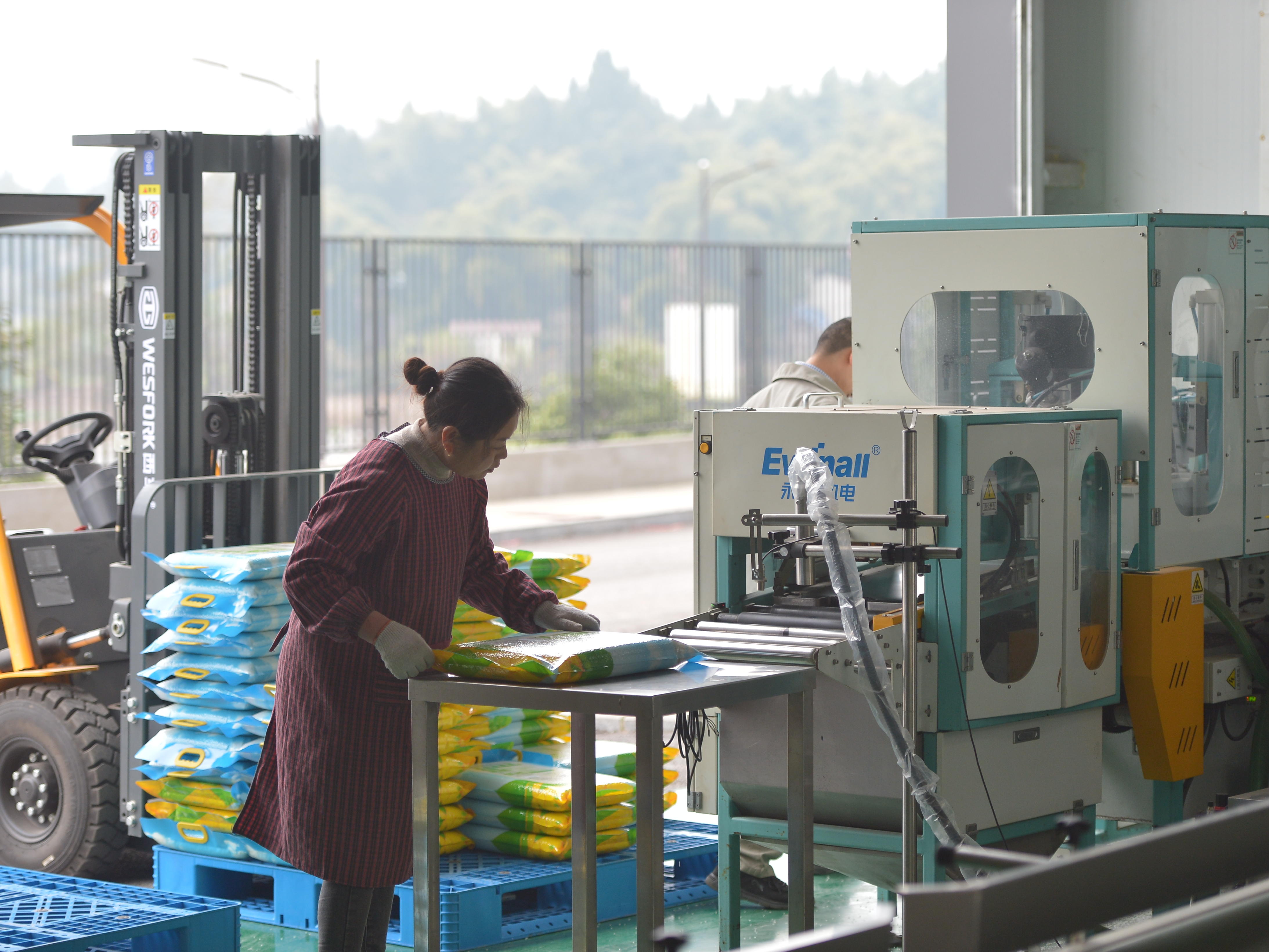 在安徽无为的一家大型坚果加工企业里,这样的仓库在园区里共有10万平方米,一共可以储藏5000多万件坚果产品,每天都有10万多个线上订单的快递包裹从这里发出。