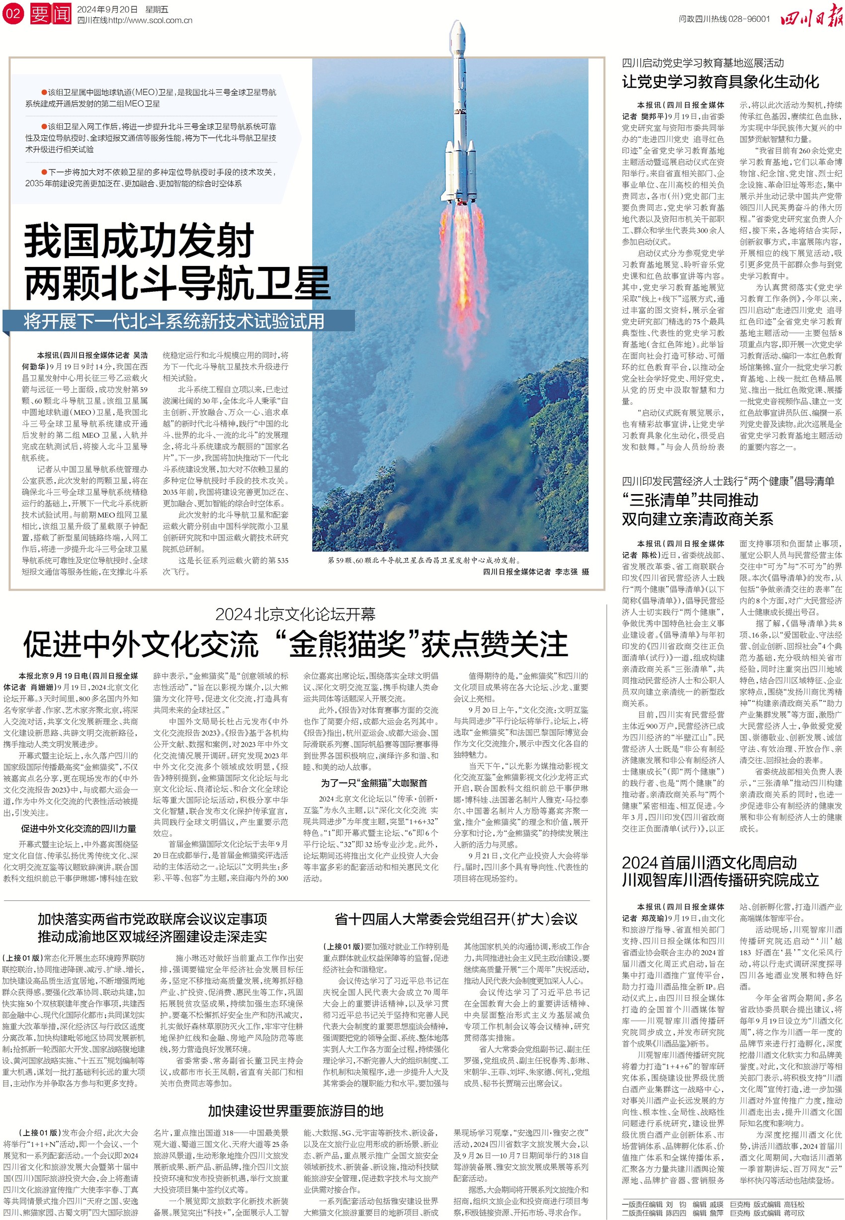 昨日9点14分,第59颗、60颗北斗导航卫星在西昌卫星发射中心成功发射。该组卫星入网工作后,将进一步提升北斗三号全球卫星导航系统可靠性、定位导航授时、全球短报文通信等,并开展下一代北斗系统新技术的试验试用。走进今日二版,回顾“一箭双星”发射。