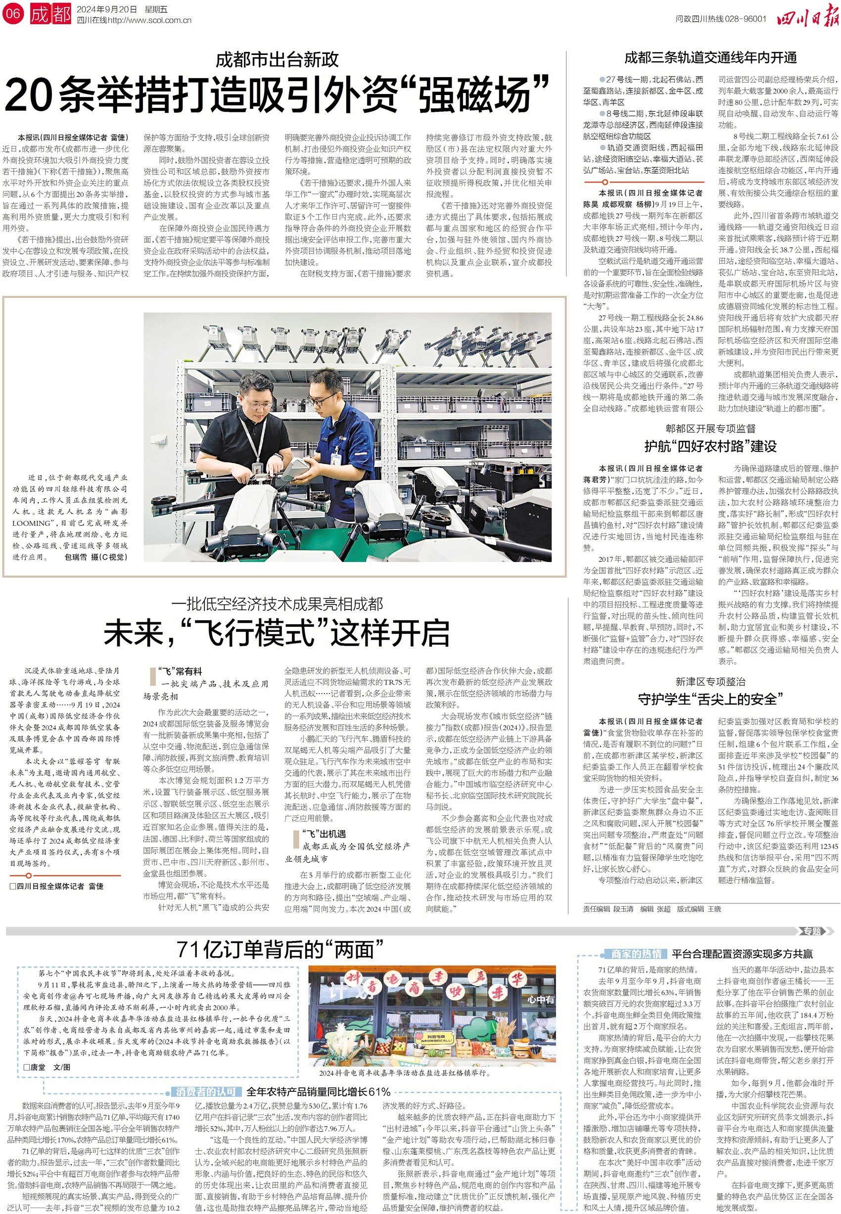 自动唤醒、自动发车、自动运行,成都又一全自动地铁线路——27号线一期预计年内开通;此外,四川省首条跨市域轨道交通线路——轨道交通资阳线也迎来首批试乘乘客,线路预计将于近期开通;同样预计今年内开通的还有8号线二期。这三条轨道交通线路的开通,将为沿线居民的出行带来更大便利。关注今日六版,一起看“轨道上的都市圈”建设新成果。