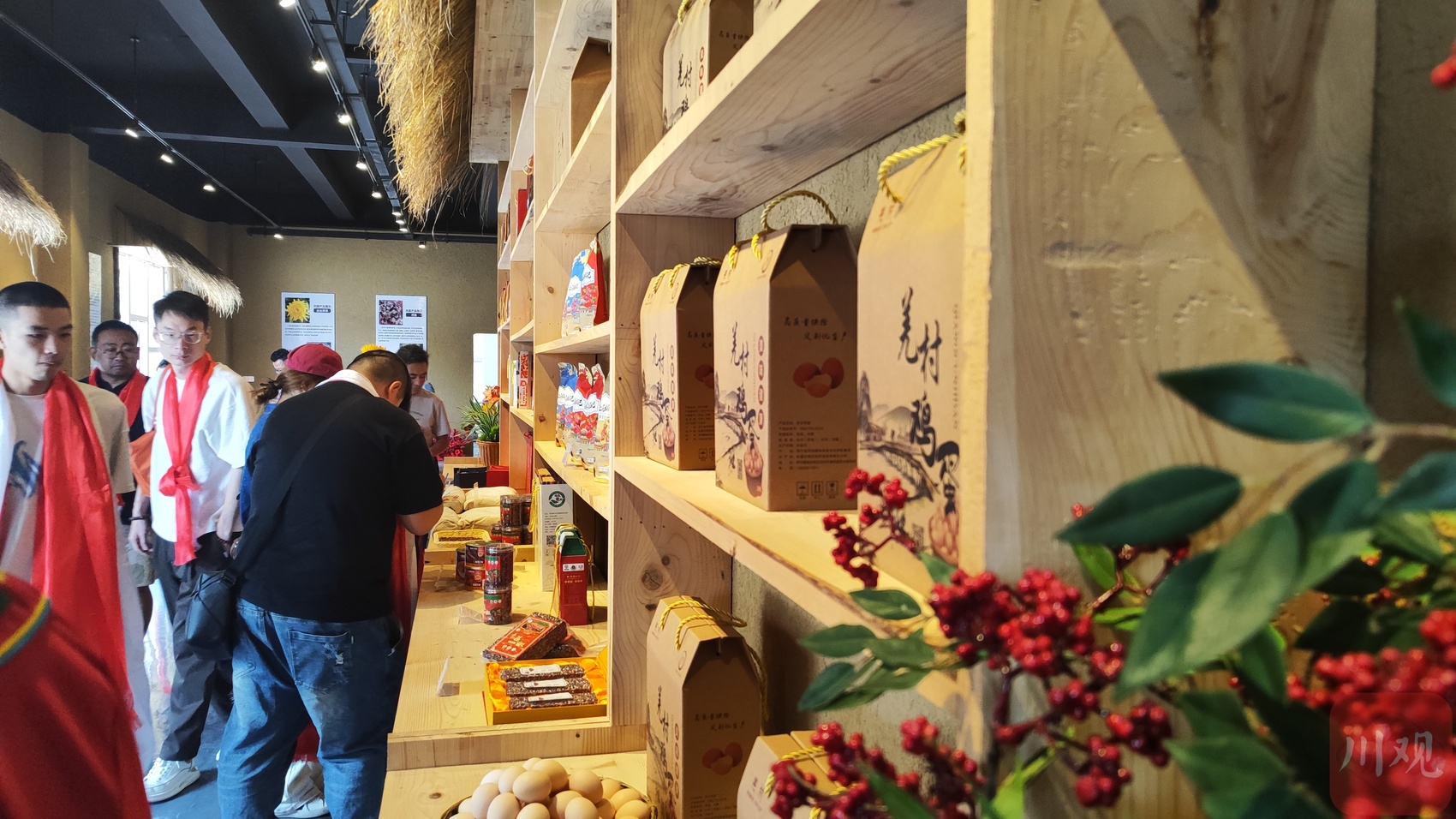 麦吉村开发的农特产品布满一整面展示墙。 王攀 摄