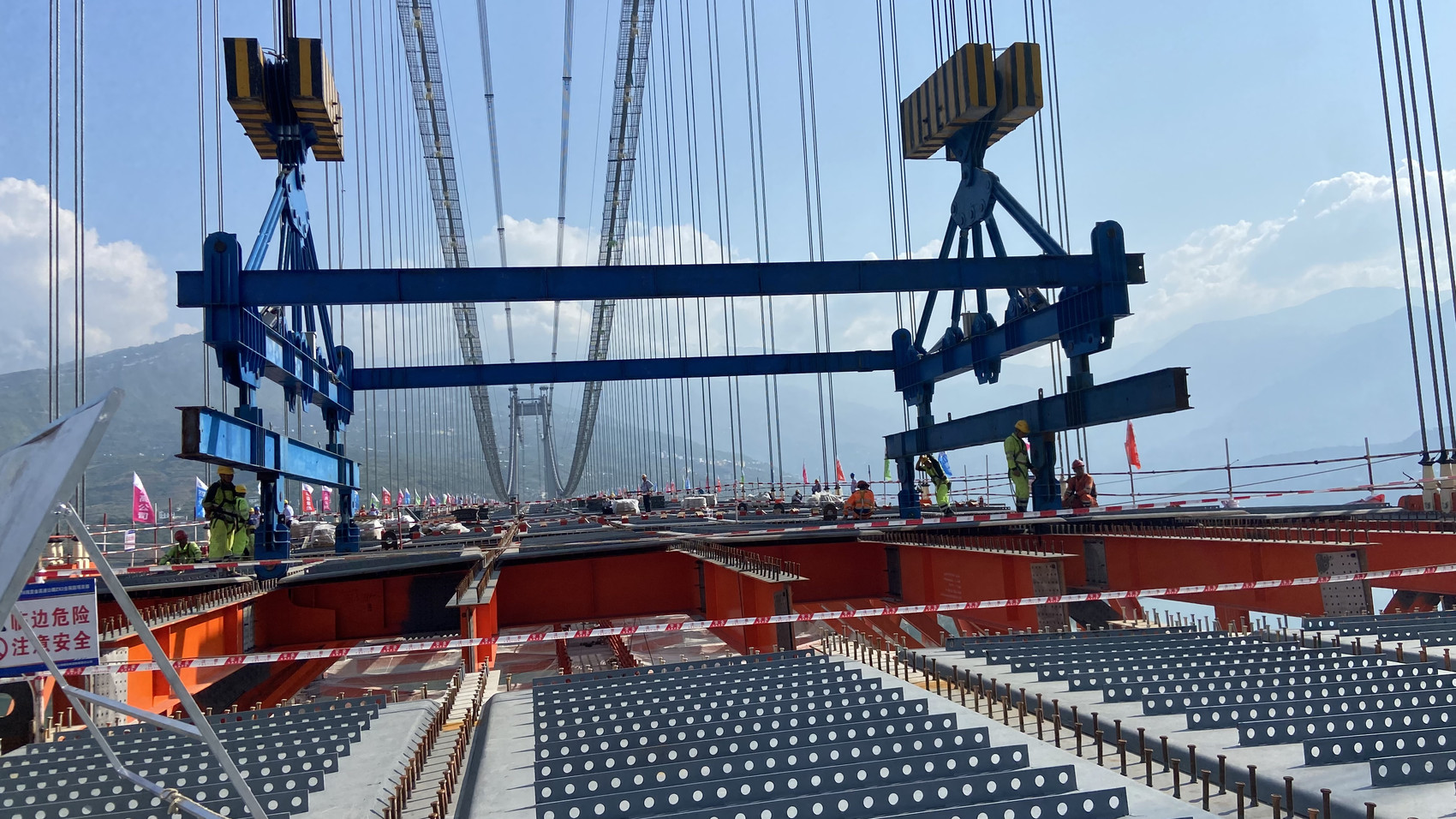 以桥面主体钢桁梁吊装为例。70多段超200吨的钢桁梁要精准拼接,要求严丝合缝到误差仅有3毫米,“难度如同豆腐上绣花!”蜀道集团川高沿江宜金公司卡哈洛建设管理处副处长魏晔堃解释。