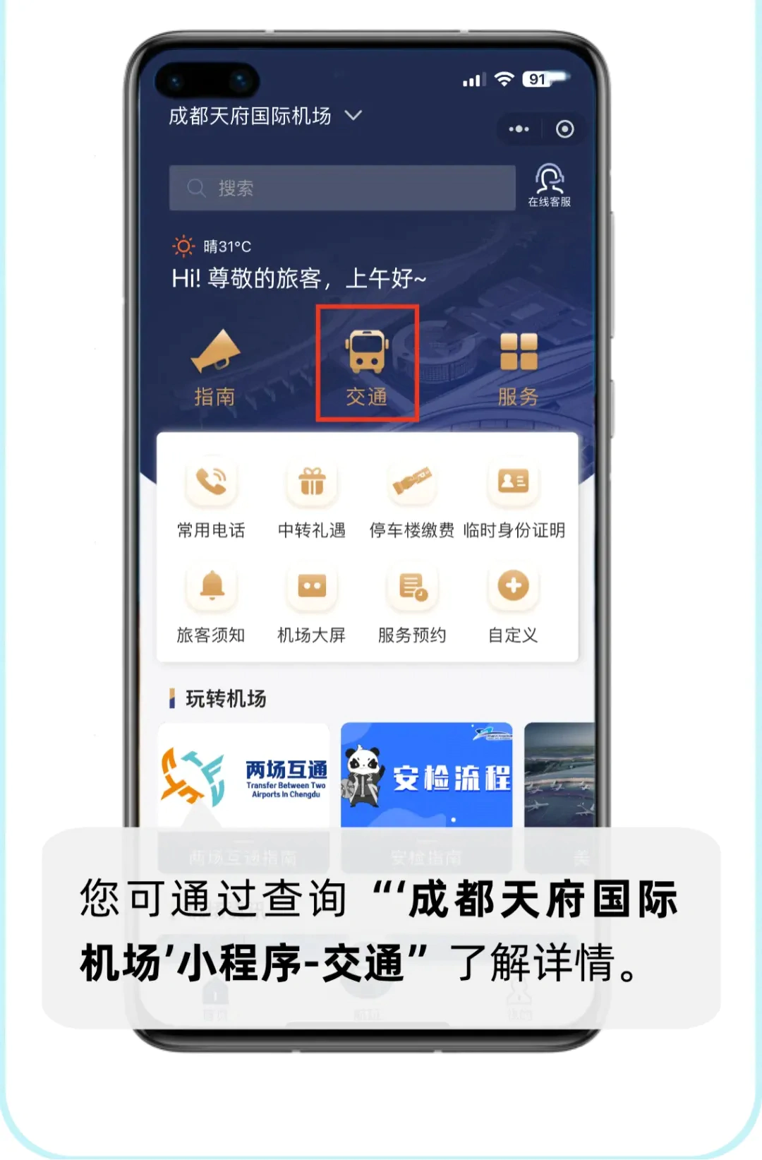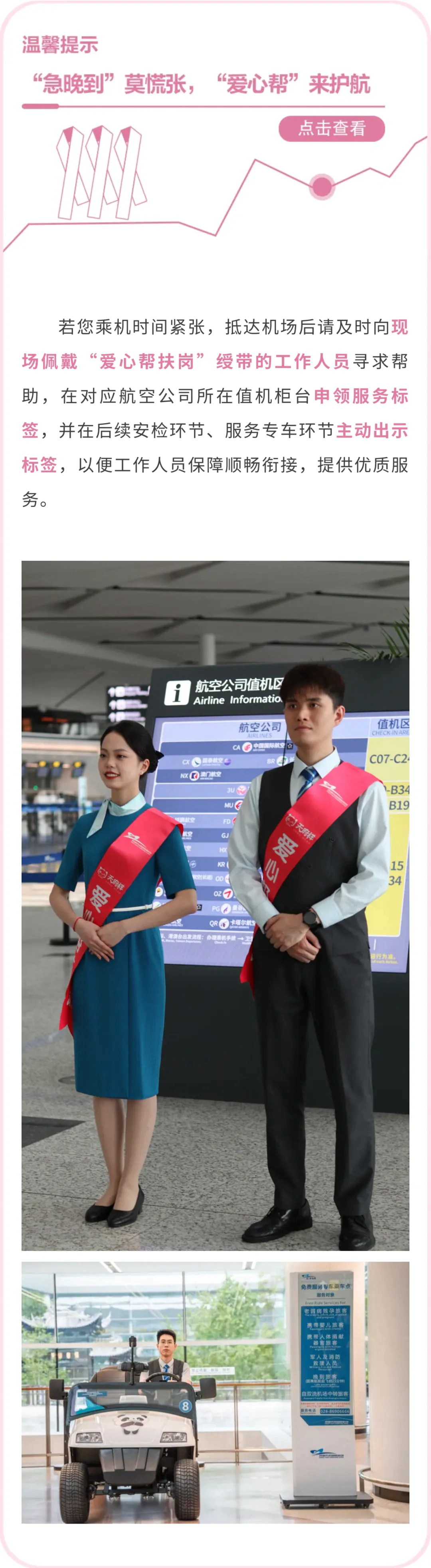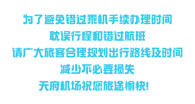 请广大旅客合理安排时间,提前到达机场办理相关手续。如有疑问,可提前拨打天府机场24小时服务热线(028-86906666)或对应航空公司客服电话咨询详情。